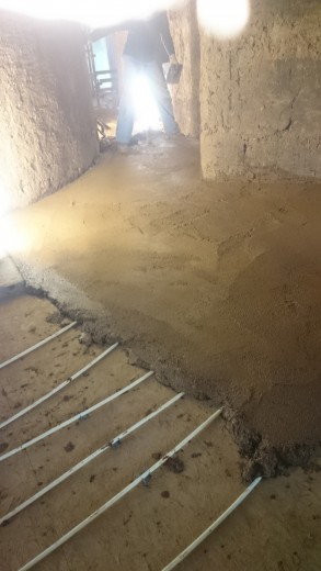 Underfloor heating and an earth floor laid in the main house